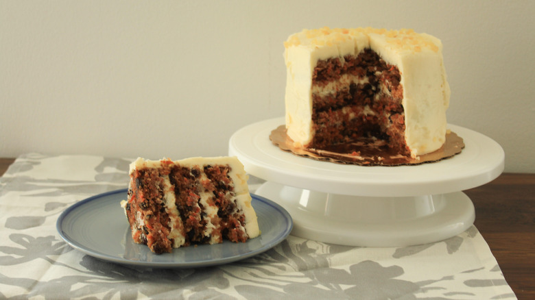 The sponge is moist and flavorful, and the hint of cinnamon within provides just the right amount of warm spice to really bring everything together. The grated carrots, raisins, and walnuts add a good texture to the sponge, providing a nice little crunch to a soft sponge. What we really love here is the mascarpone cream cheese frosting. It's rich in flavor but quite light and has just the right amount of sweetness to contrast the savory flavors in the cake. The candied ginger on top is also a nice touch, adding extra spice and flare to a cake that goes hand-in-hand with the autumn season. Enjoy a slice of this with a hot toddy and a high five for a job well done. You deserve it all.