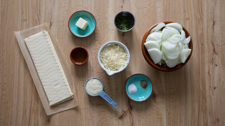 Gather your cheesy caramelized onion tart ingredients