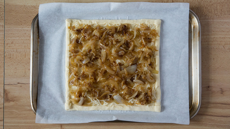 Arrange the onions in an even layer on top of the cheese.