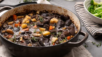 - Place the lid back on the dish and return the venison stew to the oven to finish cooking for the remaining 2 ½ hours.