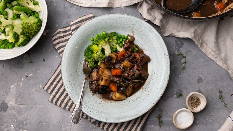 This venison stew with Guinness and pickled walnuts recipe, created by Tasting Table recipe developer Jennine Rye, was inspired by the home-cooked stews from her childhood. Diced venison is slow-cooked in Guinness over a period of 3 ½ hours to create a wonderfully tender and caramelized meat. Paired with a mixture of root vegetables and mixed with the unique tang of pickled walnuts, this one-pot stew is the ultimate in warming comfort food. Perfect for chilly days, it's ideal served on its own or with a simple side of steamed veggies. This venison stew is a great way to feed family and friends, so read on to find out how you can make this venison stew with Guinness and pickled walnuts.