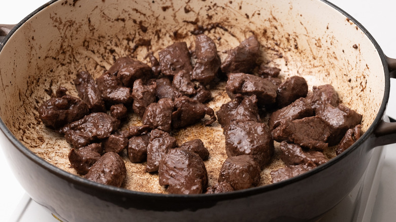 - Brown the venison for 5–6 minutes. This may need to be done in batches.