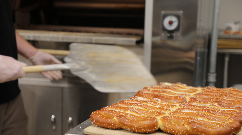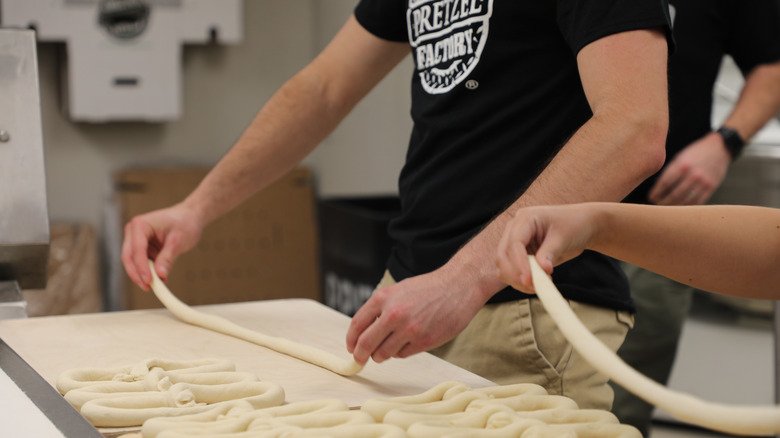 Every step in any bread-baking endeavor is vital to having an ideal end product that is soft and risen. "I think probably one of the more important parts of making pretzels is, like when you make bagels, you're boiling water, and you are adding (with pretzels) something to make the water more alkaline," Kristina Eckart stated. If you're unfamiliar, all water has a pH level on the acidic to alkaline scale, with fresh water typically existing right in the middle of that scale. Because it's usually pretty neutral, you have to add an element to your boiling water to make it more alkaline so that your soft pretzels get that nice crust on the outside that you know and love.