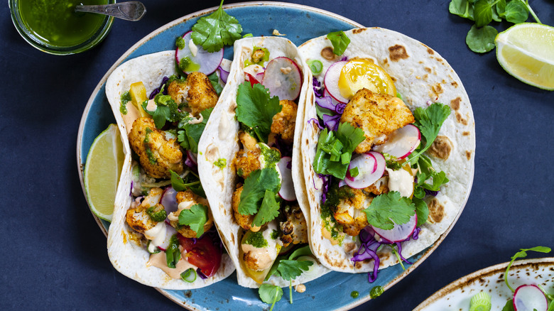For example, you can steal Tasting Table's recipe for grilled cauliflower fajitas and turn them into tacos. The dish includes perfectly seasoned cauliflower (including spices such as ancho powder, paprika, ground cumin), bell peppers, and onions — but it's missing that sweet acidity that the pomegranate pico brings to the table. Or, you can bring together crispy chickpeas, avocado slices, and cabbage, and top it all off with a scoop of pomegranate pico for a crunchy and fresh taco meal.