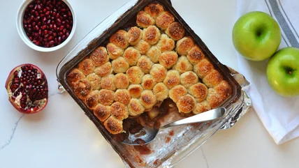 Recipe developer Rika Hoffman suggests that her pomegranate apple cobbler is just the thing to switch up your dessert game should you find that, "the heavy and rich desserts of the holiday season grow cloying." As she tells us, "This recipe contains so many contrasts: tangy-creamy, warm-cold, crunchy-soft." The tang, of course, comes from tart apples and pomegranate juice in the filling and pomegranate seeds on top, with the latter helping to make it nice and colorful, too. Hoffman likes to top her cobbler with ice cream or whipped cream as well, saying that either one can help to "mellow out" the tartness of the fruit. She feels that this dessert is not only full of flavor but fun to eat due to all of the different textures, ranging from the soft fruit filling to the tender biscuits and the crunchy sugar on top.
