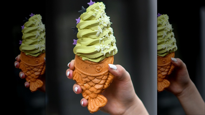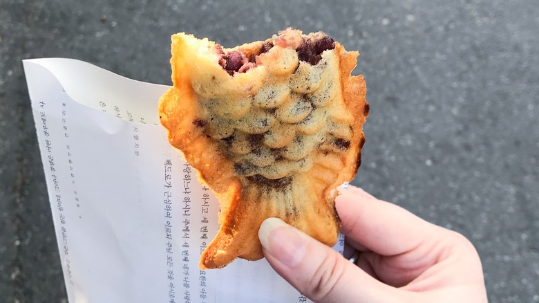 You may have noticed that Korean carp bread bears an uncanny resemblance to Japanese taiyaki, and that's because it's essentially the same thing (give or take a few minor differences such as size and the type of fish depicted). As the stories go, a Japanese marketplace seller was having difficulty selling his imagawayaki — round pancakes stuffed with red bean paste — due to competition in the market.