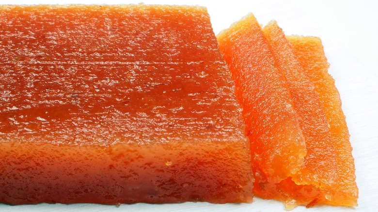 One delicious way to add this unexpected fruit to your charcuterie board is through quince paste, also called membrillo or quince cheese. It's enjoyed in several cultures around the world, including Spain, where it's often seen paired with manchego. Thus, quince paste is a must if opting for a Spanish-themed charcuterie board.