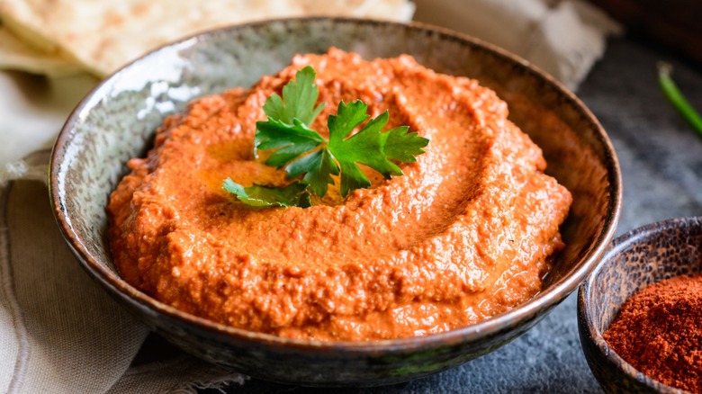 What's a good charcuterie board without spreads and dips? While hummus is typically the go-to dip to include, muhammara is another Middle Eastern dip that makes a great option. Not only will it introduce your guests to a unique flavor they may never have experienced, but its red hue can add a much-needed splash of color, making your board all the more aesthetically pleasing.