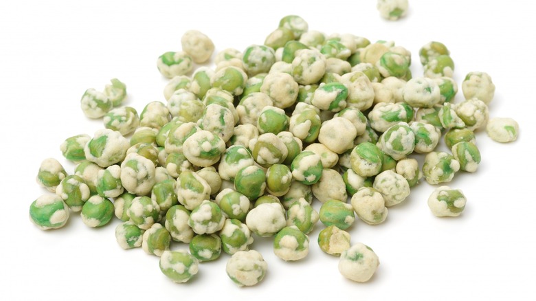 Wasabi peas are also a great way to add crunchy texture to a charcuterie board. Beyond the textural element they provide, they are spicy in a vastly different way from the heat of hot peppers. Plus, they impart a pleasant contrast with milder cheeses and meats in the same way that hot mustard on a sandwich acts as a welcome flavor booster. There are plenty of store-bought options for a quick and easy addition, but if you're feeling ambitious and have access to authentic wasabi, make your own by following our recipe for wasabi peas.