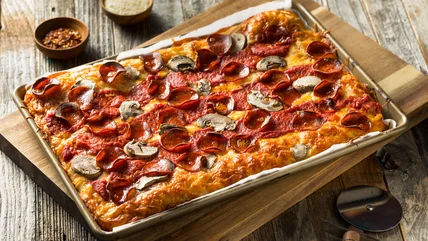 Pizza is the ultimate comfort food, and the best part might just be that there are countless ways to customize it, from the toppings to the sauce to the cheese — and, of course, the ever-important crust. When it comes to that crust, thick Chicago-style deep dish and thin New York-style are often front of mind. But if you're interested in switching things up for your next pie, consider looking to the north at the sleeping giant from Michigan: Detroit-style pizza.