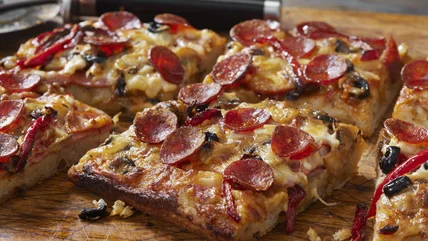 The best way to get pepperoni of the ideal thickness for your pizza is buy whole pepperoni sticks, which you can find in most grocery store deli sections. These sticks allow you to cut the pepperoni to a perfect thickness, and they are small enough around to be bite-sized, unlike most sliced pepperoni from the deli. Choose one in natural or collagen casing, as this also helps its cupping ability. Pre-sliced containers of pepperoni are also usually too thin. So dedicate yourself to the best pepperoni, cut it yourself, and be rewarded with the perfect slice.