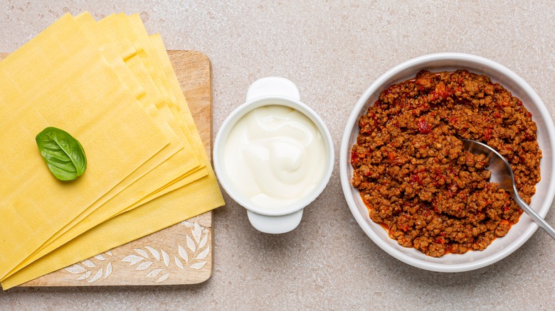If you're in the mood to make cannelloni but don't have any pasta tubes left in the cupboard, we've got the perfect substitute that you'll likely have in your pantry. Did you know you can simply roll your own cannelloni noodles with par-cooked lasagna sheets to mimic the satisfying texture of this hearty Italian classic? It may take more time to make cannelloni this way, but it's worth the effort when you're craving a cylindrical stuffed pasta supper with a gooey cheese topping and a fragrant, herby aroma. What's more, making cannelloni eliminates all that layering that comes with preparing a lasagna, and it's much easier to portion the tubes of noodles into individual servings.