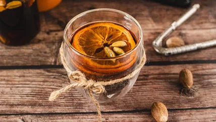 According to Ksenia Prints of At the Immigrant's Table, mead, often associated with Vikings and medieval times, makes for a unique twist on the traditional mulled wines usually enjoyed this time of year. This honey-based drink has been cooked with spices for centuries, and our recipe pairs it with brandy, citrus, ginger, and warming spices for a cozy winter cocktail.