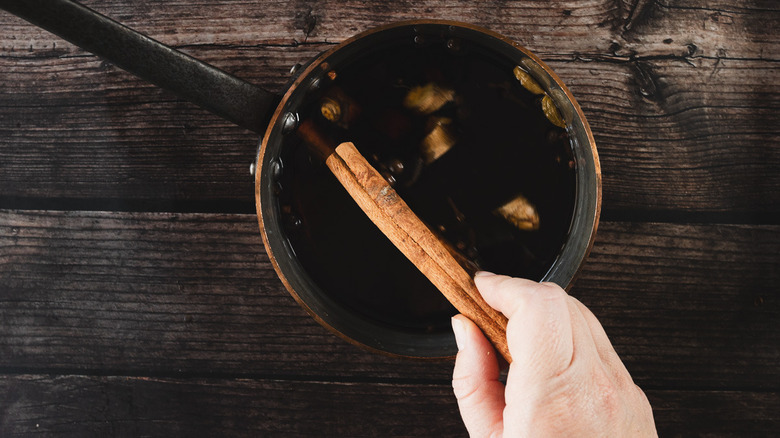 - Add the ginger and cinnamon stick.