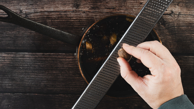 Grate fresh nutmeg into the pot.