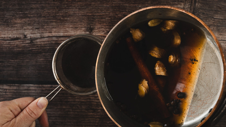- Strain the liquid through a mesh strainer and pour into glasses.