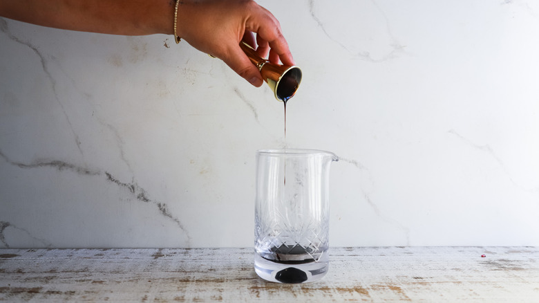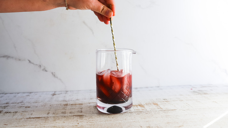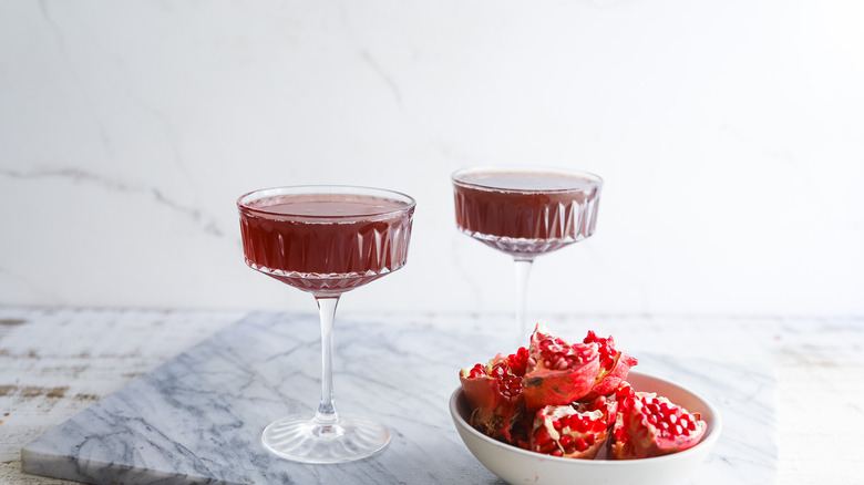 - In a mixing glass, combine pomegranate molasses, pomegranate juice, and gin.