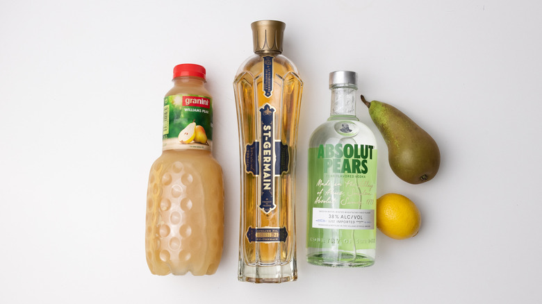 Gather the ingredients for this elderflower pear martini cocktail recipe