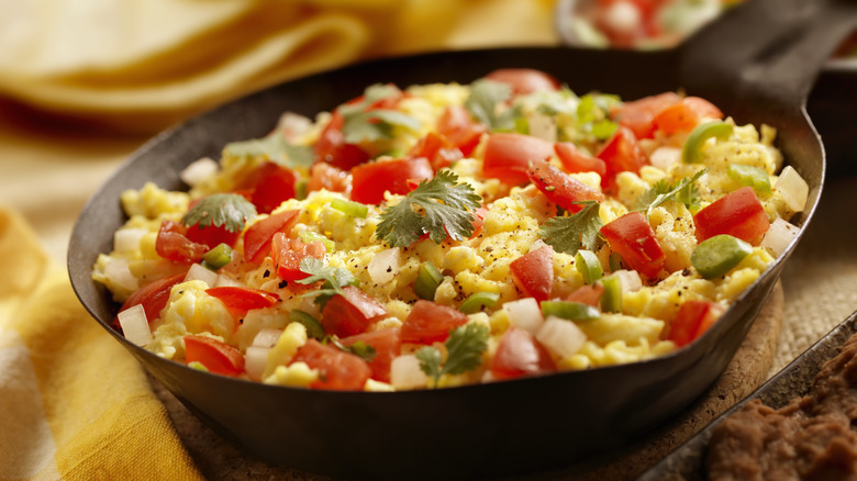 Scrambled eggs are a quintessential breakfast food and a popular choice for many. So why would you waste your time making a lackluster batch? The ingredient that will change your scrambled eggs forever is a bit unconventional but will keep your eggs smooth and creamy. A dollop of mayonnaise contains eggs, oil, and acid — all of which are helpful for your scramble.
