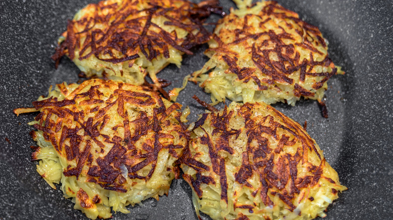 Hash is a popular accompaniment to savory breakfast fare, but the big problem is that the potatoes don't always crisp up in the pan. To avoid those sad, soggy, limp spuds, par-cook your potatoes before placing them in an oiled skillet. This will ensure you get crispier breakfast potatoes every time and will save you the arduous (and sometimes dangerous) task of pushing around the patties in a pool of hot oil for a long time.