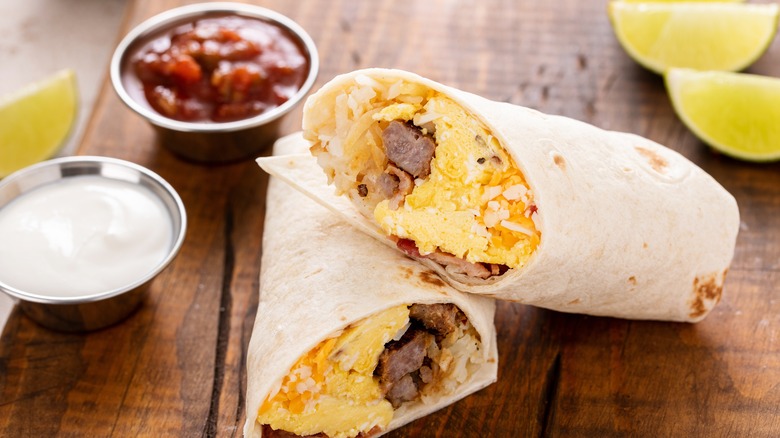 Wrap your breakfast burrito in paper towels to prevent it drying out