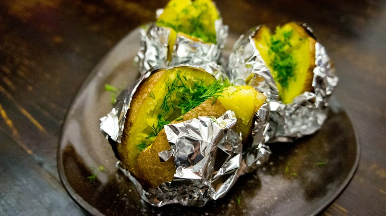 While poking holes in the foil is a fantastic way to impart a smoky taste, there are other ways to add flavor to grilled potatoes. Before wrapping the potatoes in foil, give them a generous rub with a mix of spices. Common choices include garlic powder, onion powder, paprika, and a hint of cayenne for those who like a bit of heat. Don't forget the basics — salt and pepper — as they are essential for bringing out the potato's natural flavors. Experiment with different combinations to find what works best for your palate.