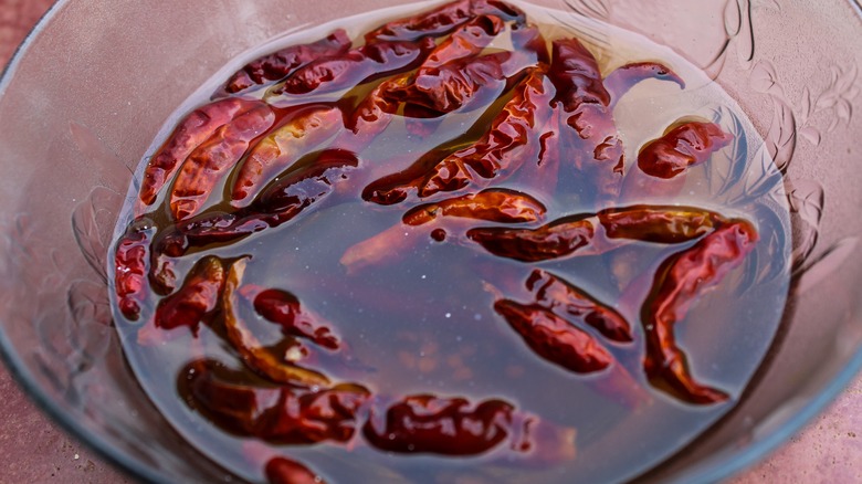 Soaking chilies in various solutions is another widespread desflemar practice. Just as sugar and tart ingredients are well-known remedies for overly spiced foods, they're also the most common ingredients in chili-soaking solutions. Some recipes also recommend soaking chilies in milk, another widely used ingredient to neutralize capsaicin. One soaking method involves creating a vinegar and salt solution in which to boil chilies before transferring them to a second solution of sugar water. Another method entails soaking chilies in hot water before adding a simple syrup of boiled piloncillo and a dash of vinegar.