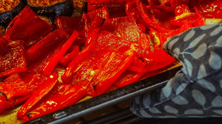 And while roasted peppers can make for a side dish of their own, don't overlook all the other ways they can be utilized, too. Throw them into romesco sauce for that classic smokey flavor, or add them to aromatic salads such as Moroccan zaalouk. You can invigorate hummus with a new twist, or take a cheesy route and craft a batch of rajas con crema with some broiled poblanos peppers. There'll never be a short supply of applications, so feel free to fill up the pan; there will always be a way to enjoy them.