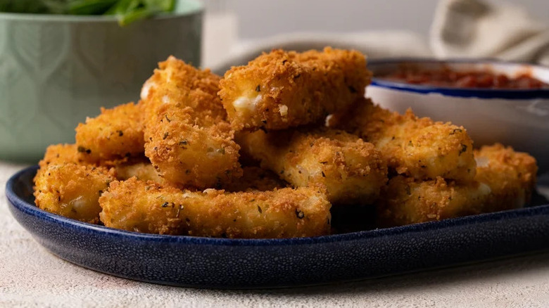 Who doesn't love mozzarella sticks? In our experience, this beloved finger food is a family favorite, with everyone from children to grandparents munching on the cheesy snacks. Calling deep-fried cheese a crowd-pleaser is an understatement; plates will be empty every time you serve this recipe, guaranteed.