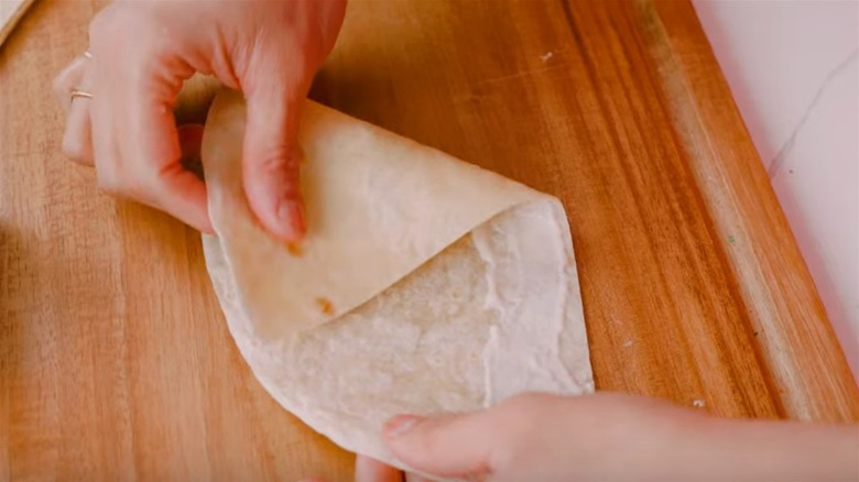 If you're worried about store-bought flour tortillas making your samosas feel dry or taste off, there are ways to ensure that they're restaurant quality when you cook with them. Warming them up is key. If you don't have a tortilla warmer, you can dip yours in water then place them on a hot skillet or griddle. You can also steam tortillas for 10 to 15 minutes. Either method softens them for easier folding and makes them taste fresher.