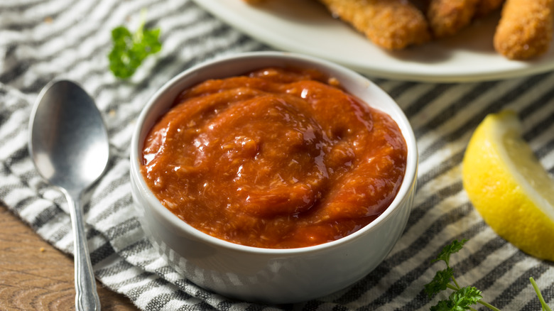 The key to making a scrumptious dish sometimes boils down to having a fantastic sauce. When it comes to grilled meats, we often think of classic condiments like ketchup, mustard, and, of course, the reigning champion — BBQ sauce. One that is hardly ever considered is cocktail sauce, and yet, it's a surprisingly fitting choice for anyone looking to take those BBQ dishes up a notch.