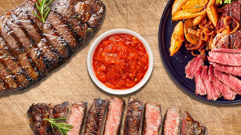 Unlike BBQ sauce, which is renowned for its deeply sweet and savory flavor profile, cocktail sauce leans more toward the bold, spicy, and tangy side. This means it most likely won't give your meat the same effect as BBQ sauce, but that's not necessarily bad. Instead, you'll get a unique zing that is equal parts sophisticated and exhilarating. A combination of various hot sauces and aromatics, it's certainly not a lackluster choice for amping up those grilled meat cuts. The cocktail sauce will uniquely complement smoky and savory tastes; its tumultuous layers of intense and hearty flavors unfold beautifully on the palate.
