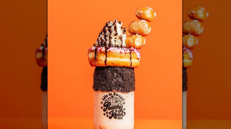 Just a few blocks from the blinding lights of Times Square, Peachy Keen appeals to the kid in us all. The interior is frozen in the '70s and the menu reflects the groovy times, serving reimagined diner classics like hamburgers, disco tots, and, of course, milkshakes. The novelty shakes are served with sugary garnishes piled so high they nearly conceal the straw. The classics are available for purists, but the extravagant ones are hard to resist.