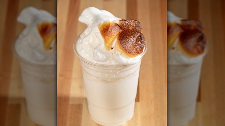 Bronson's uses soft-serve to whip up their milkshakes, delivering the most luscious consistency imaginable. The milkshakes are made using Bronson's superior soft serve, resulting in a super slurpable dessert. The toasted marshmallow milkshake has a potent cream flavor, made with vanilla soft serve, vanilla powder, and oat milk. The best part is it's topped with a real homemade marshmallow, toasted golden and all.