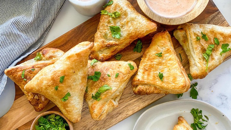 Another good reason to buy your puff pastry is to save yourself time to make your own homemade sauce to go with the air fryer samosas. Samosas are typically served with a chutney, such as cilantro chutney (also known as green chutney), red garlic chutney, or mango chutney — all of which would pair well with Tasting Table's air fryer samosas. For a creamier option, there are also yogurt-based samosa dipping sauces.