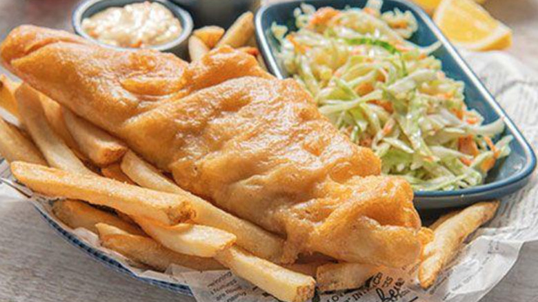 There are few dishes we love more than fish and chips. It's an essential comfort food, exactly what you want to tuck into after a long day at the beach. And luckily, Red Lobster's Fish and Chips are no exception. The wild-caught cod is battered to perfection in a crispy but smooth breading — just how we like it. It comes with coleslaw and tartar sauce, and you also get to choose a side. Naturally, we'd opt for the fries (or "chips") every time, but it's up to you if you want to sub them in for something else.
