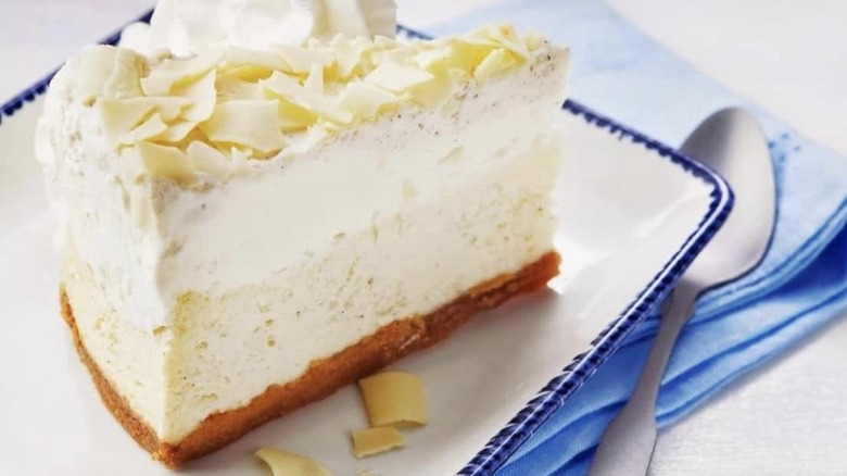 Is there anything wrong with the Vanilla Bean Cheesecake from Red Lobster? No. But is it something we'd go out of our way to order? Also no. This is perhaps the blandest, most boring dessert you could ever order — it is the literal definition of vanilla. There's the sweet Italian cream filling on the vanilla crust, topped with vanilla whipped cream and finished off with white chocolate shavings. Wow! How boring.