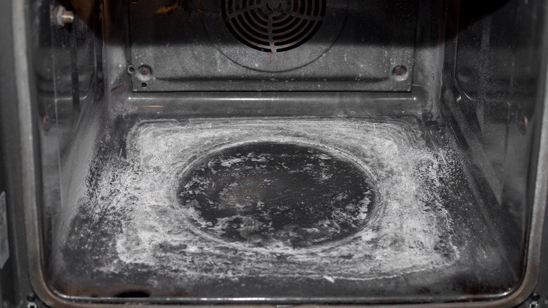 Have you ever placed a blueberry or cherry pie into the oven knowing that it was going to likely drip over the edges? Or placed a lasagna pan on the rack, thinking about how you may have filled it just a little bit too much? Hindsight is always 20/20, but the best thing you can do to clean up potential oven messes like these is to prevent the mess from happening in the first place. You can use a drip pan — which can just be a rimmed sheet pan — to prevent juices from dribbling down onto your heating element. Alternatively, you can also purchase a heat-resistant oven liner to ensure your oven stays clean for as long as possible.