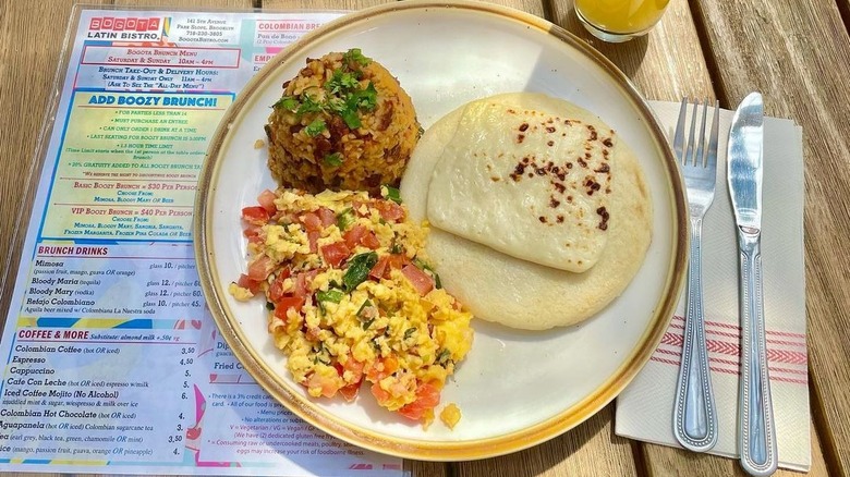 Latin food lovers flock to this Brooklyn-based Columbian spot. After ordering the stellar boozy brunch deal and starting off with some signature empanadas, try one of the brunch specialties. If you've ever had traditional migas before, the Migas de Arepa is an innovative twist scrambled with white arepa and Columbian chorizo with a side of guacamole, tostones, and garlic sauce.