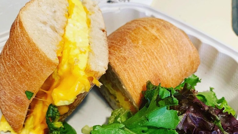 The bacon, egg, and cheese with a coffee deal for only $8 is a true steal, but if you're willing to spend a couple of extra bucks, we recommend the chicken biscuit sandwich that'll fill you up for the day. The sandwich features perfectly fried chicken, crispy bacon, gooey American cheese, a fluffy egg, and sauces. And be sure to check the specials list for a rotating selection of sandwiches and bring your plant-based friends to try the vegan options using Old Bay tofu scramble.