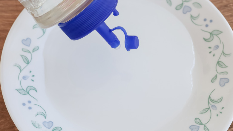 - Pour about 2 tablespoons of simple syrup into a small bowl or saucer that is big enough to fit your glass.