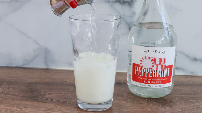 Add the peppermint schnapps to the glass.