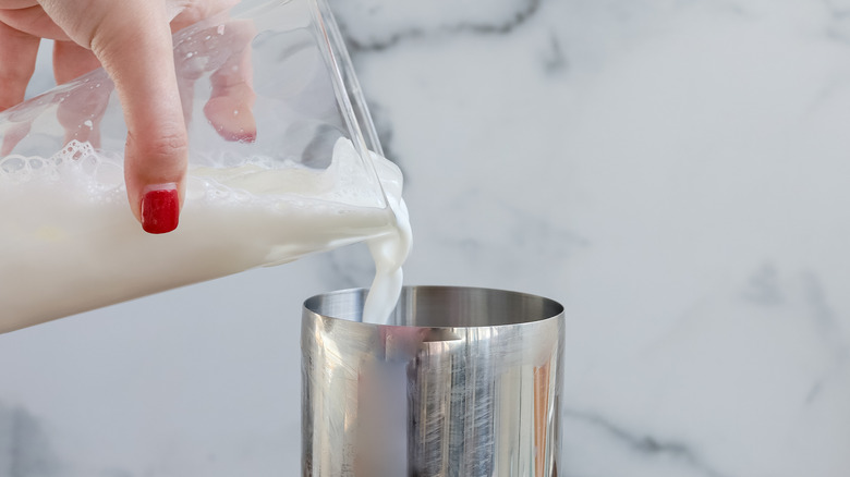 If you follow a vegan or dairy-free diet, you don't have to miss out on this sweet minty cocktail. However, you'll need to make a few adjustments to the recipe. Regarding the half-and-half, Morone says, "You could use a dairy-free half-and-half in place of the regular half-and-half in these drinks." Many dairy-free plant-based milk brand have a version of half-and-half, too, made with ingredients such as almonds, cashews, or oats. Coconut cream is another option but it will impart a greater taste to the drink than the others.
