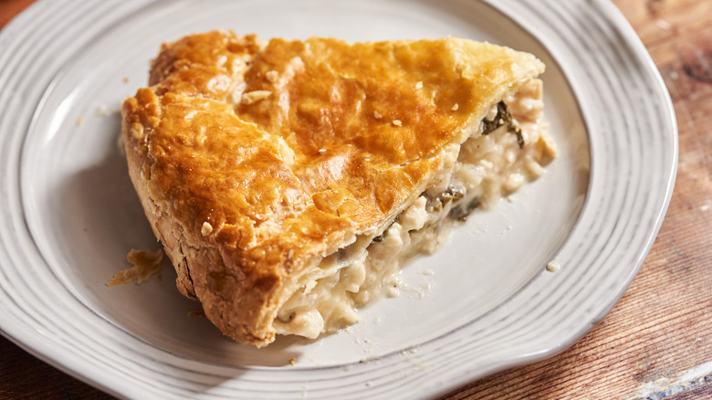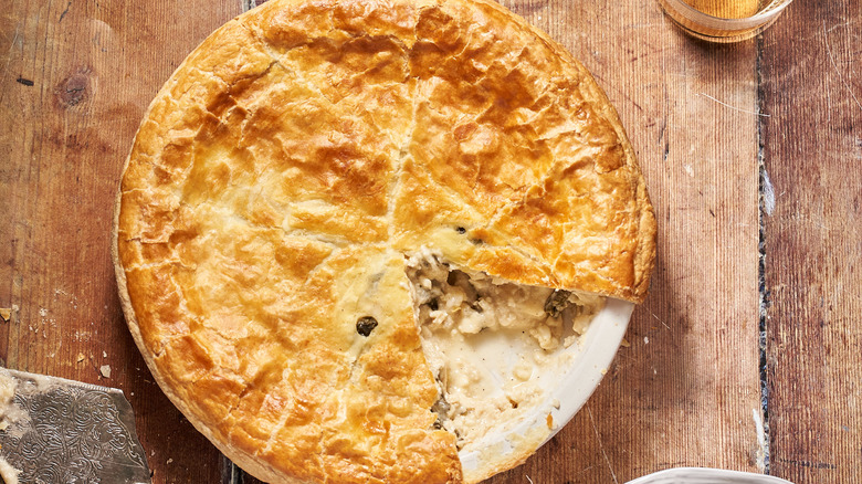Chicken pot pie has to be the first thing that comes to mind when you think of comfort food (or at least in the top five). Warm, inviting, and a mixture between one of the world's best desserts and best soups, pot pie is hard not to like. And it isn't difficult to make, either. Unlike a chicken pie, which requires a top and bottom crust, chicken pot pie is typically as described: chicken filling, baked into a pot with a pie crust on top. Plus, because the goal is to simply have a flaky, crispy crust on top, it's common to use store-bought puff pastry to shortcut the recipe.