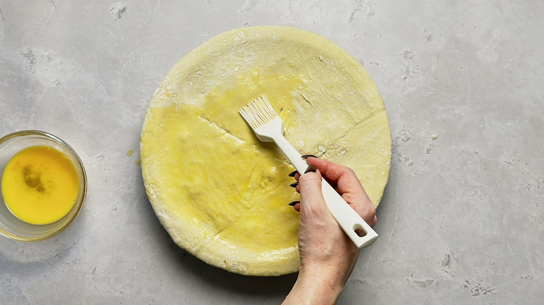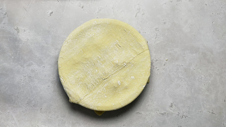 Cover with puff pastry, slicing small holes in the crust to vent.