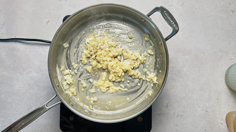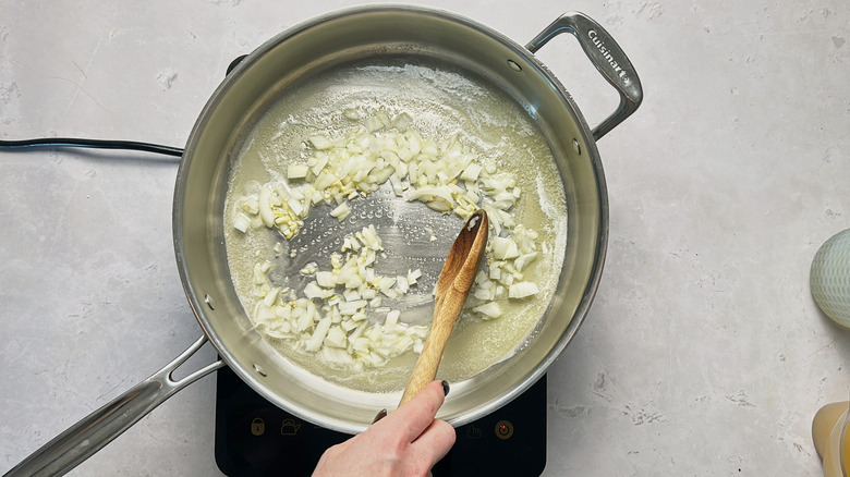 - Add onion and garlic and saute until soft, about 3-4 minutes.