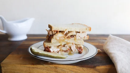 With gravy and a cranberry mustard spread, this recipe elevates the traditional turkey sandwich into a gourmet yet wonderfully simple meal.