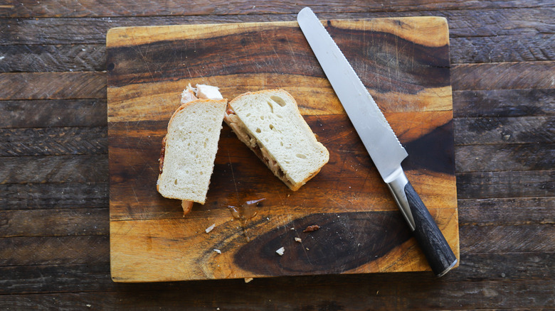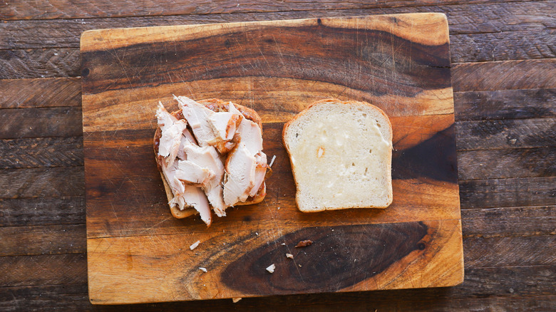 While you can eat this sandwich with cold, refrigerated turkey, it's best to heat it just before assembling the sandwich to maintain its juiciness and warmth — be sure you know the best way to reheat leftover turkey. To reheat leftover turkey without drying it out, you can use the oven, microwave, or stovetop. For the oven method, preheat to 325 F, place the turkey in a baking dish, add a splash of broth or water, cover with foil, and heat until it reaches 165 F, about 20-30 minutes.
