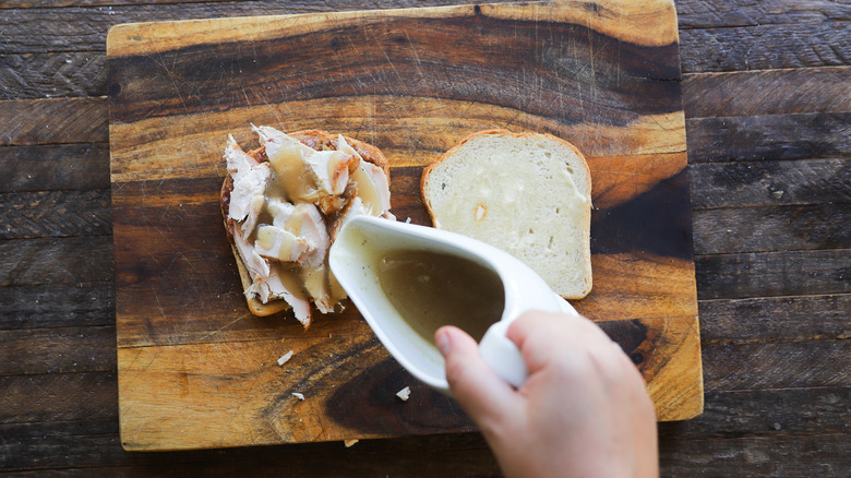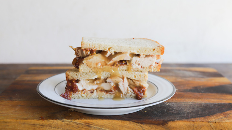 Aside from all these inventive dishes, there's a special place for the classic turkey sandwich — a quintessential leftover turkey treat. This hot turkey gravy sandwich recipe by Taylor Murray elevates the traditional turkey sandwich into something more gourmet while remaining wonderfully simple. By incorporating a tangy cranberry mustard sauce and a rich gravy, this recipe is the perfect example of how leftovers can be used in a way that's both easy and unexpectedly delightful.