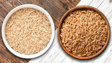 Like wheat, rice is a type of grass, but it's a different species with different origins. Rice was first cultivated in China more than 7,000 years ago, far from wheat's home in the Middle East. Unlike wheat, rice is a semi-aquatic grass, which is why it is more cultivated in tropical and subtropical regions. Brown rice, like any rice, does not contain any gluten, and its nutritional profile can be significantly different from wheat products like farro.
